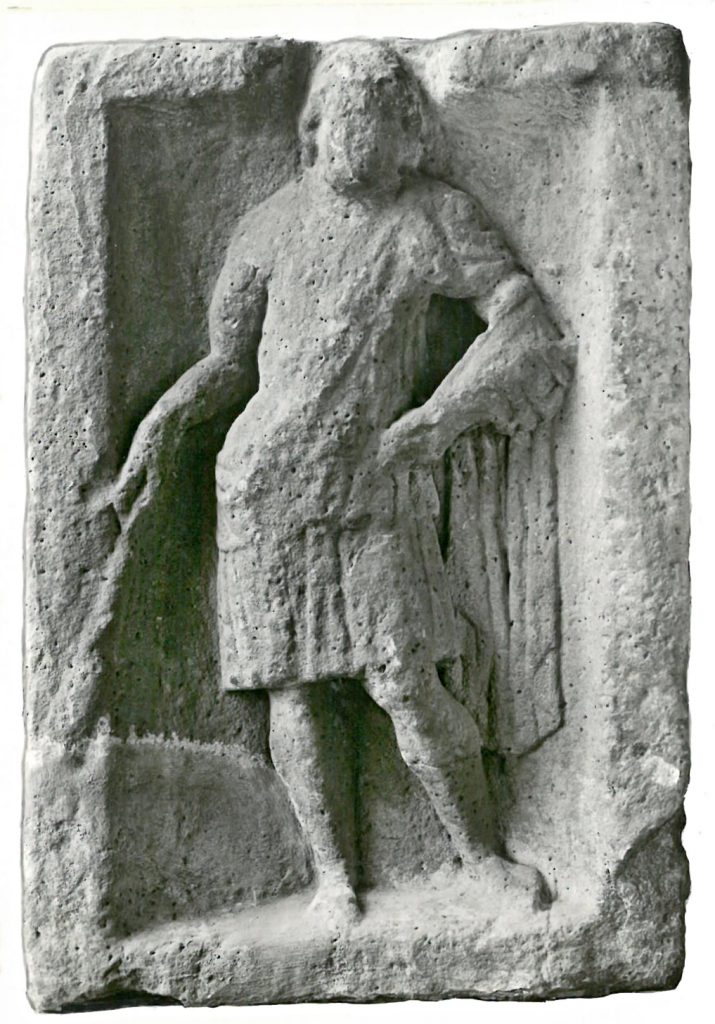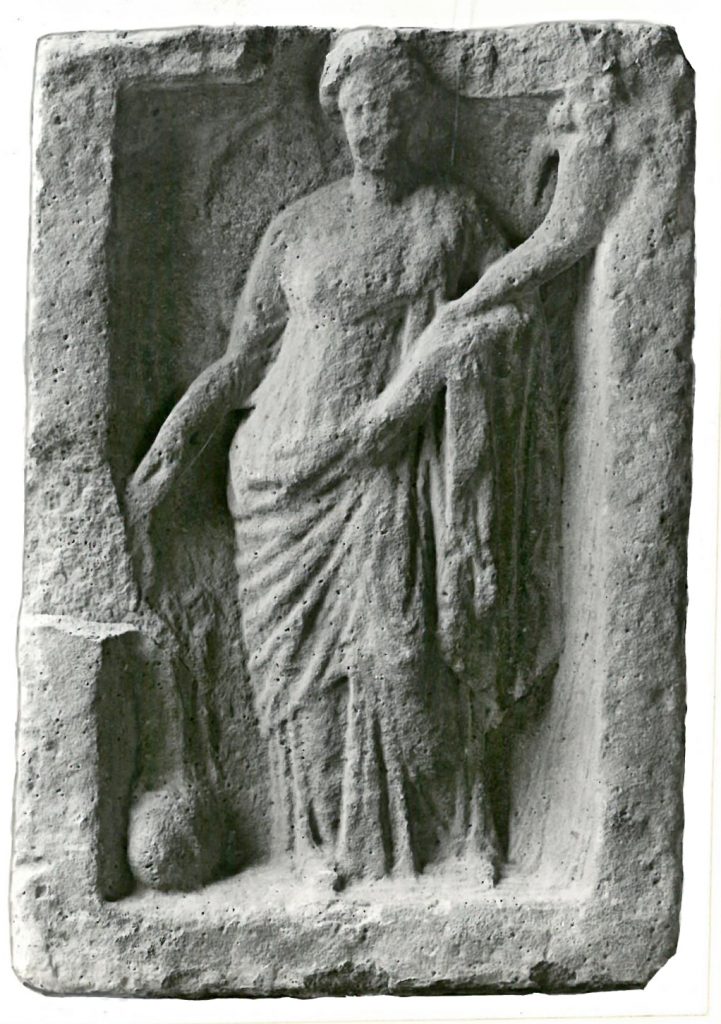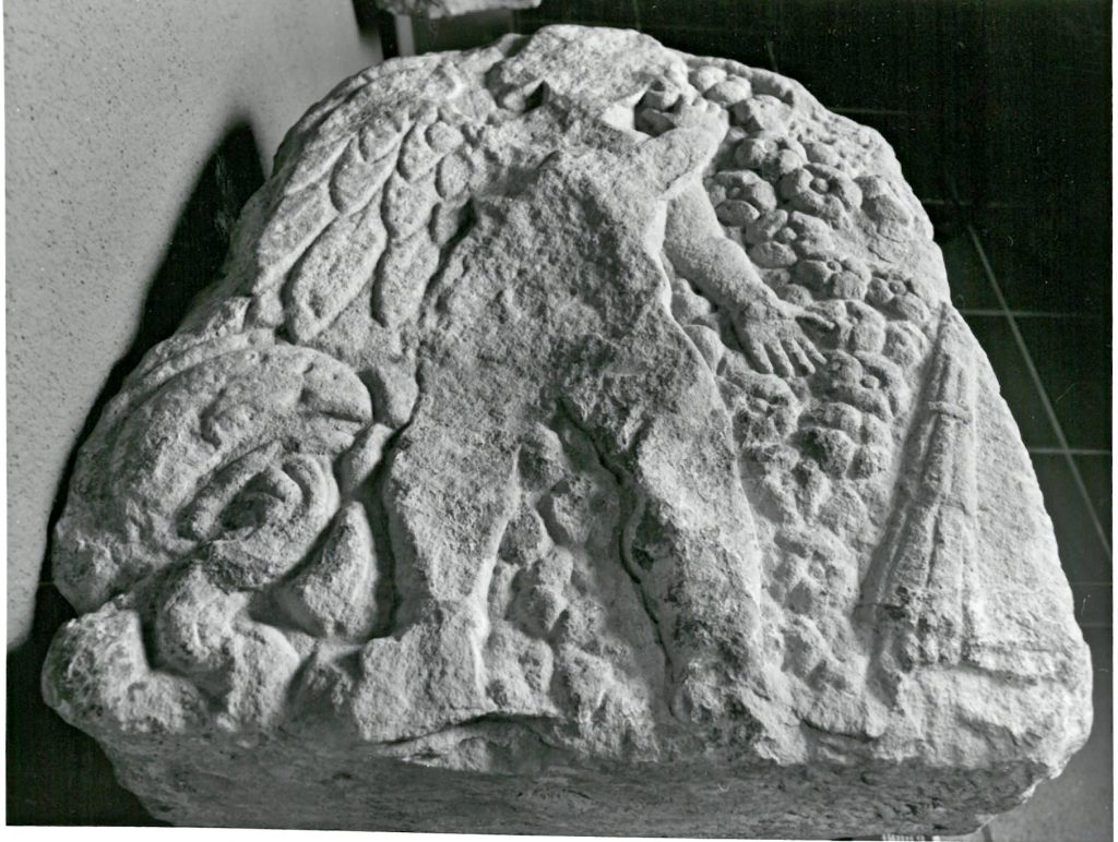 Der Grabstein der Afrania Afra weist auf der Oberseite das Relief mit dem Putto auf.